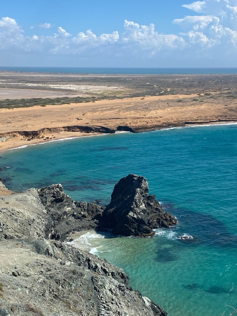 4️⃣ after 4 intense days we headed to the most incredible part of this adventure: ‘La guajira’. This is a huge carribian desert covered in giant sand dunes, salt pans and picturesque beaches, and home to Colombia’s largest indigenous population: The Wayúu. They are known as the people of the sun, sand, and wind. The community is matrilineal and is made up of about 30 clans that are represented by distinct animals. The mother’s brother is an important father figure for the children, and women have a great deal of autonomy and are active in the political life of the community. Women and men are both spiritual leaders. We had to go through a local travel agency to visit them, as you cannot get to these places on your own; the desert is a harsh terrain, and only drivers with experience can get you there. We stopped by Uribia, salinas de Manaure, Cabo de la vela, Pilon de Azucar, Punta Gallina and several Wayuu villages in our way.